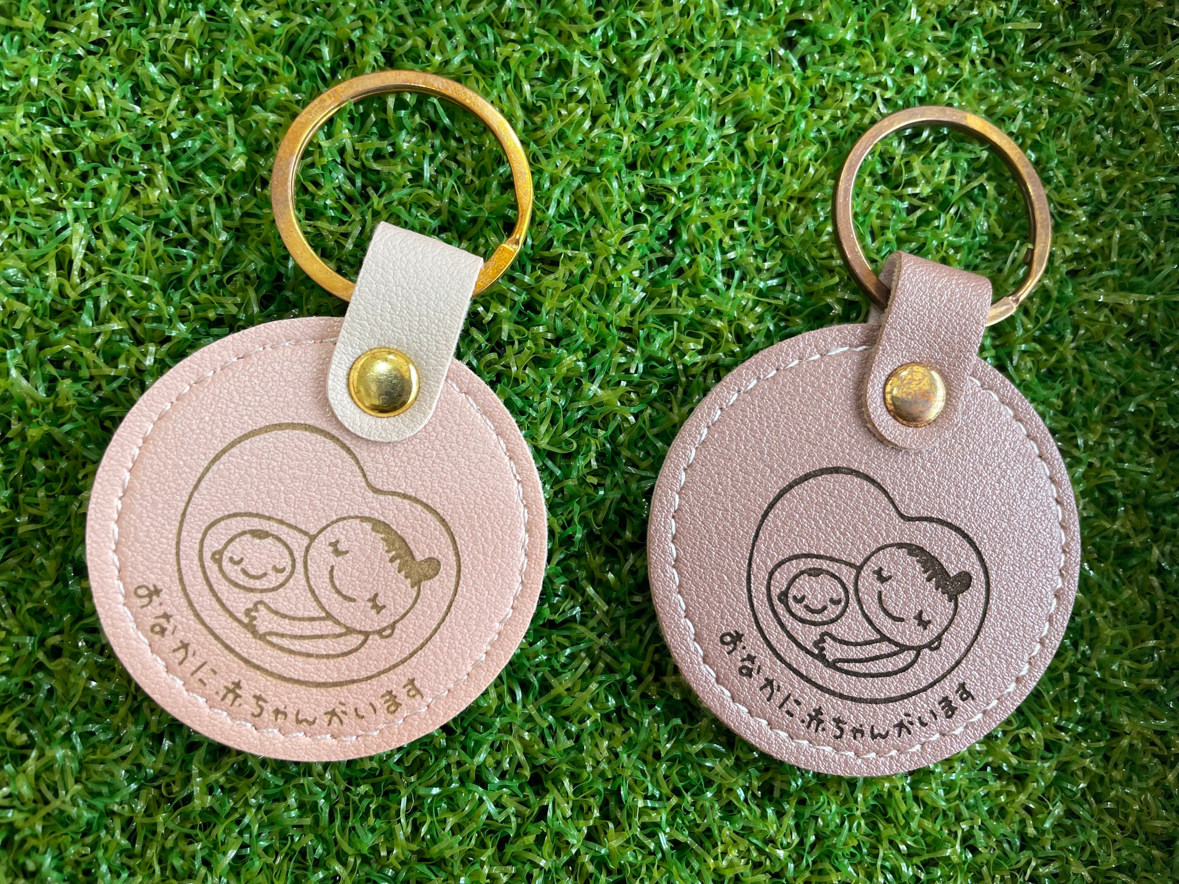 お洒落なレザー調の素材を使用しており、ファッションアイテムとしても重宝します。マタニティマークをデザインに取り入れたこのキーホルダーは、妊婦さんやママを応援する思いが込められています。